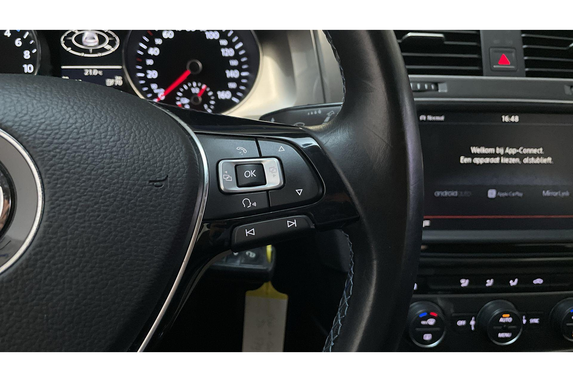 Naast handmatige bediening kunt u belangrijke functies met uw stem bedienen dankzij de ingebouwde spraakbediening. Waarheen gaat de reis? Het navigatiesysteem met harde schijf brengt u trefzeker ter plekke! Met automatische airconditioning hoeft u alleen de gewenste temperatuur in te stellen. Het systeem doet de rest. Het drukke verkeer eist onderweg al uw aandacht op. Daarom is het goed dat deze Volkswagen is voorzien van diverse systemen die u assisteren tijdens de rit. Een automatisch inschakelbare verlichting neemt het waar als het donker wordt of gaat schemeren, en schakelt dan automatisch de verlichting in. Op dezelfde manier "ziet" de regensensor de eerste spatjes regen en schakelt dan de ruitenwissers in, en als het harder gaat regenen zet hij de ruitenwissers ook in een snellere stand. De achteropkomend verkeer waarschuwing is een mooie veiligheidsoptie, die middels sensoren in de gaten houdt wat er onderweg achter u gebeurt. Voor de lange ritten is de cruise control een verademing. Deze auto is voorzien van lederen versnellingspook, verstelbaar stuur, automatisch dimmende binnenspiegel, boordcomputer en centrale deurvergrendeling met afstandsbediening.