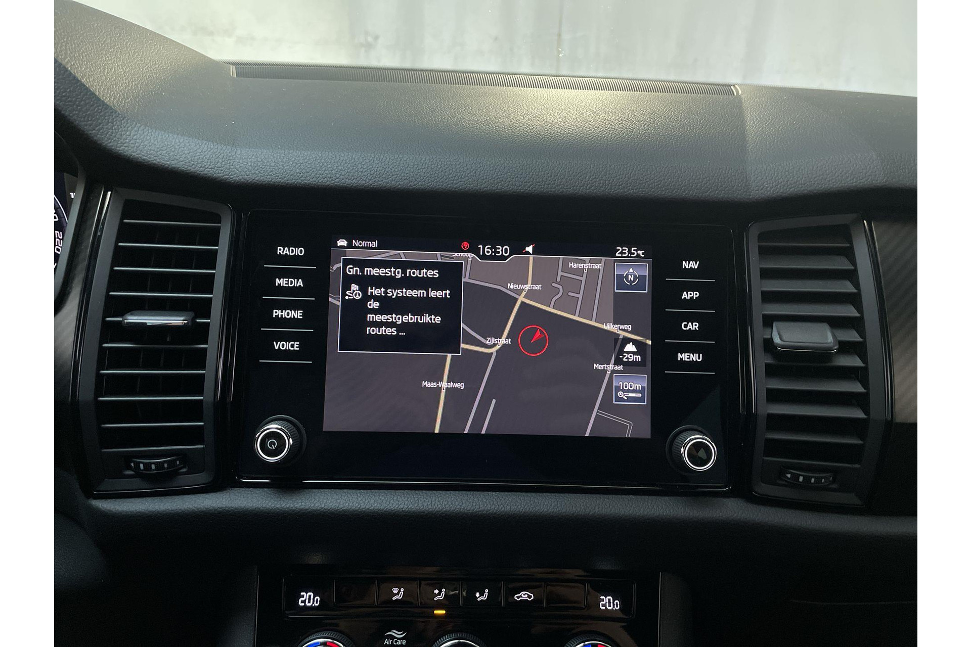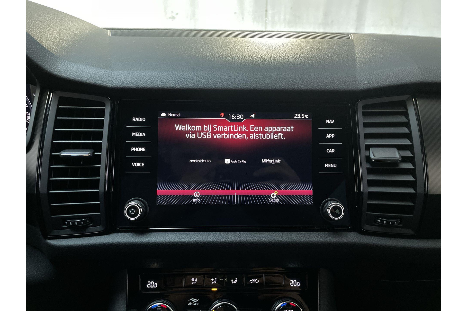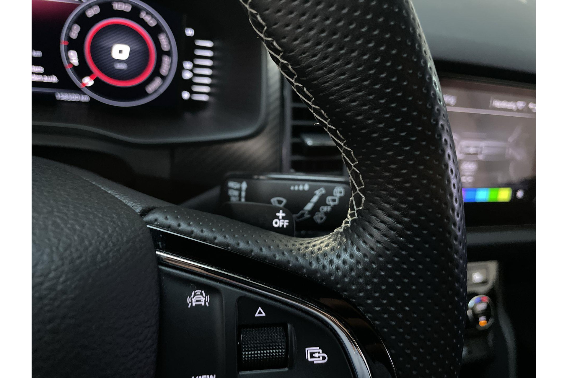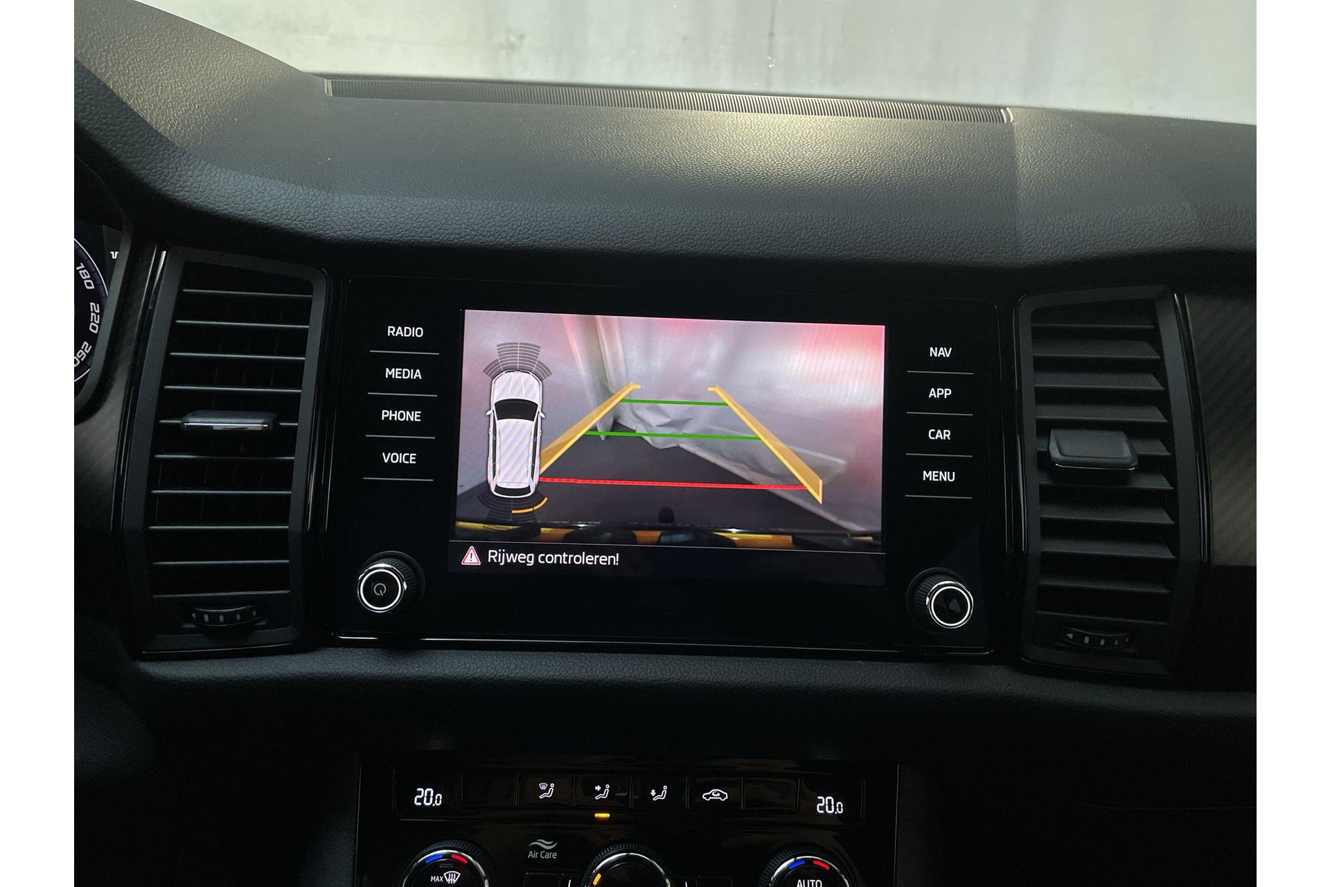Het systeem controleert alle belangrijke functies en geeft die perfect weer via het digitale dashboard. Nooit meer problemen bij achteruitrijden of inparkeren. De achteruitrijcamera houdt alles in de gaten! Een slim verborgen extra is de elektrisch inklapbare trekhaak. Met je smartphone maak je overal contact met de auto. Remote services geven direct inzicht in uiteenlopende functies en zijn op afstand te activeren. In deze Kodiaq vind jij niet alleen schakelaars op het stuur om het navigatiesysteem te bedienen en het audiosysteem met DAB-ontvangst, maar er is ook spraakbediening. De uitrusting van deze Skoda is met achteropkomend verkeer waarschuwing, electronic climate control, sportstuur met schakelpaddels, draadloos opladen, regensensor en cruise control behoorlijk compleet.