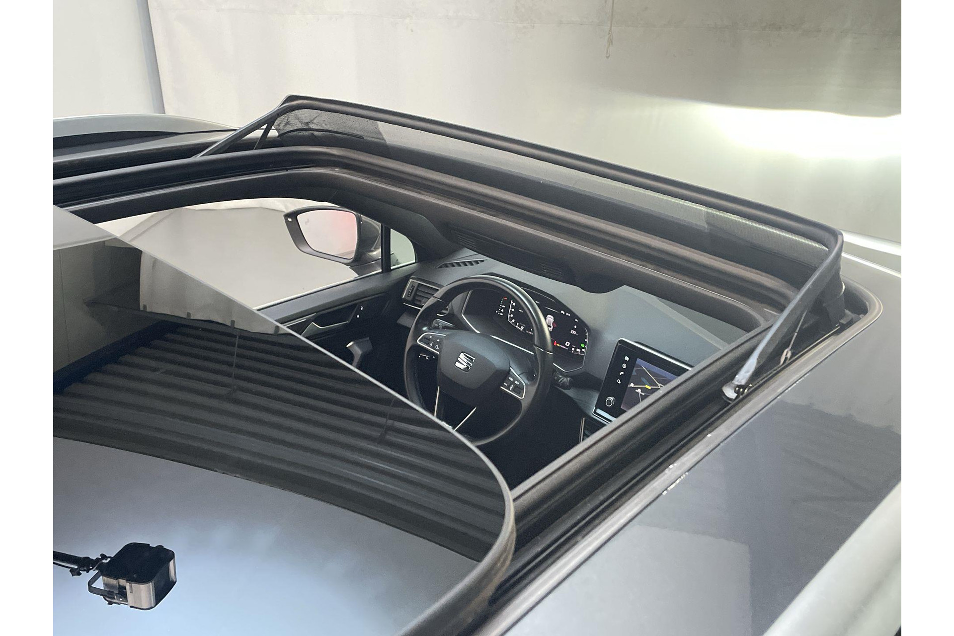 Het systeem controleert alle belangrijke functies en geeft die perfect weer via het digitale dashboard. De 360 graden camera biedt een beter zicht bij slechte weersomstandigheden, waardoor je beter kan anticiperen op mogelijke gevaren. Adaptive cruise control houdt de ingestelde snelheid vast en houdt afstand tot het voertuig voor je. Als je 'm vraagt 'hoe gaat het?' geeft deze auto zelf het antwoord. Via de app op je smartphone. Je checkt de meters waar je maar wilt, of activeert diverse functies alvast. Een belangrijke veiligheidsvoorziening is de bediening van het audiosysteem en het navigatiesysteem, via knoppen op het stuur en middels spraakbediening. DAB-ontvangst geeft daarbij een kraakheldere ontvangst. Deze Seat is voorzien van automatische airconditioning, sportstuur met schakelpaddels, regensensor, keyless entry, automatisch dimmende binnenspiegel en bagage afdekhoes.