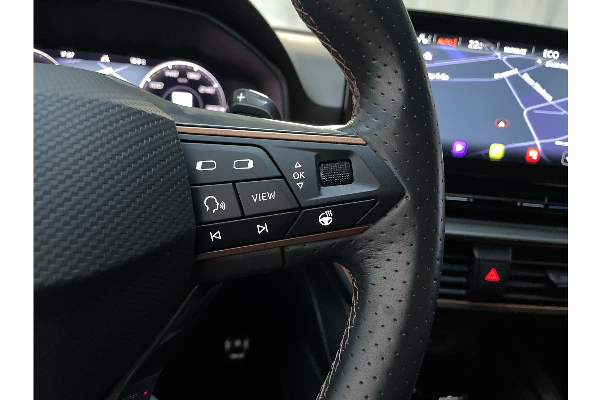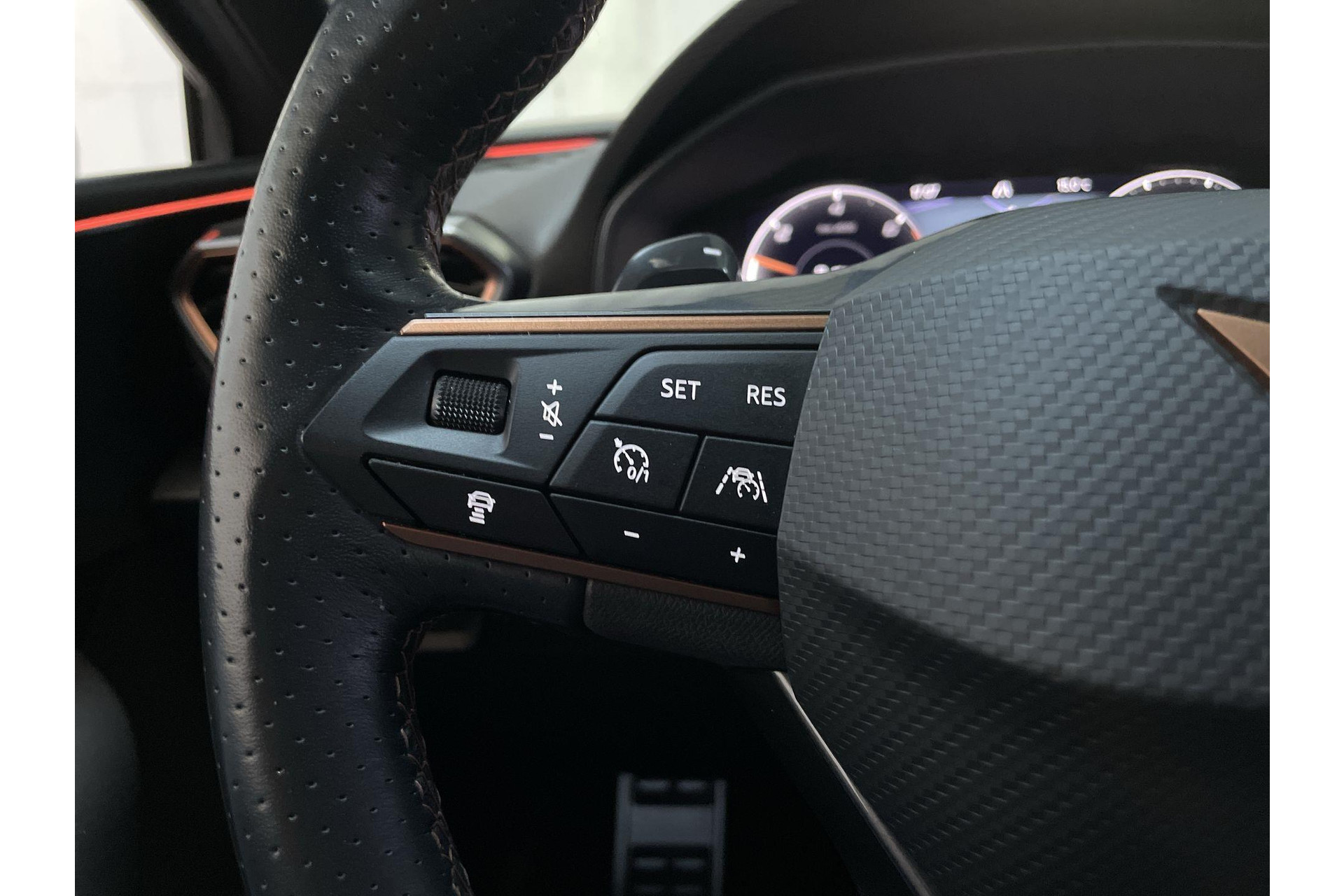 Zoals je mag verwachten van deze Cupra Leon Sportstourer is hij uitgerust met een reeks aan actieve veiligheidssystemen. Een belangrijke bijdrage aan de veiligheid onderweg levert de verkeersbord-detectie. Mooi binnen de lijnen van de rijstrook blijven? Het Lane-keeping systeem helpt altijd een handje. De forward collision warning geeft een botswaarschuwing als een aanrijding dreigt met een voorligger. Ook helpen het dodehoekdetectie, accident avoidance system, hill hold functie, vermoeidheidsherkenning en bandenspanningcontrolesysteem, jouw rit tot een veilige rit te maken.