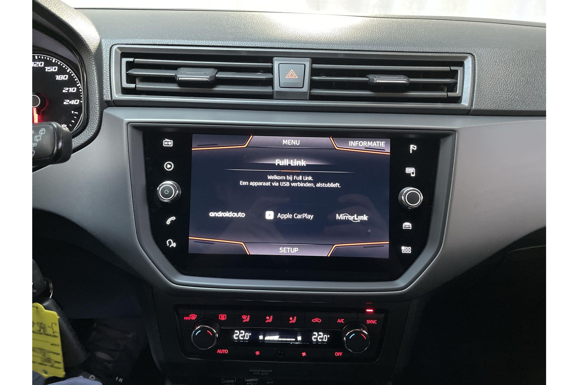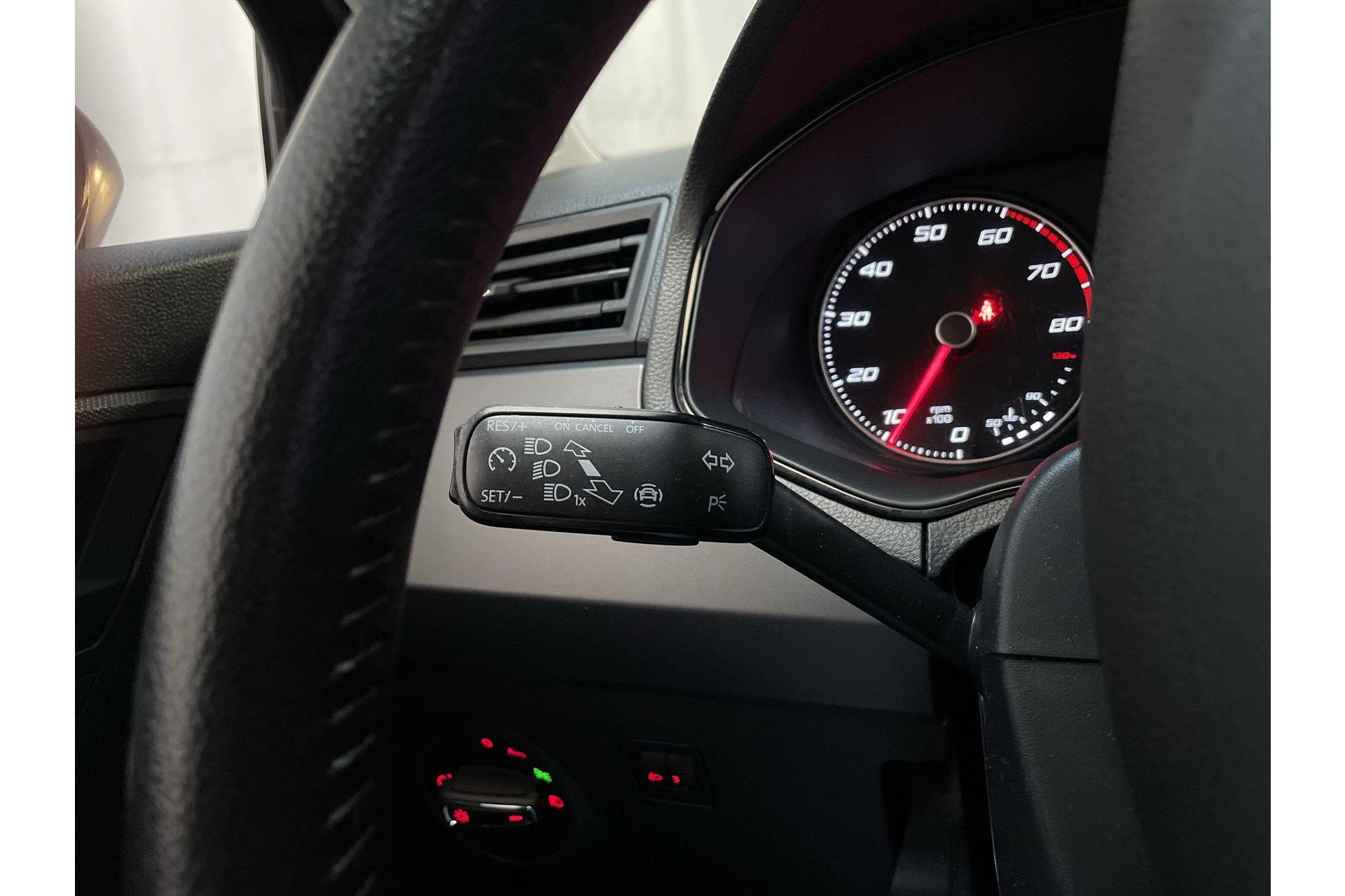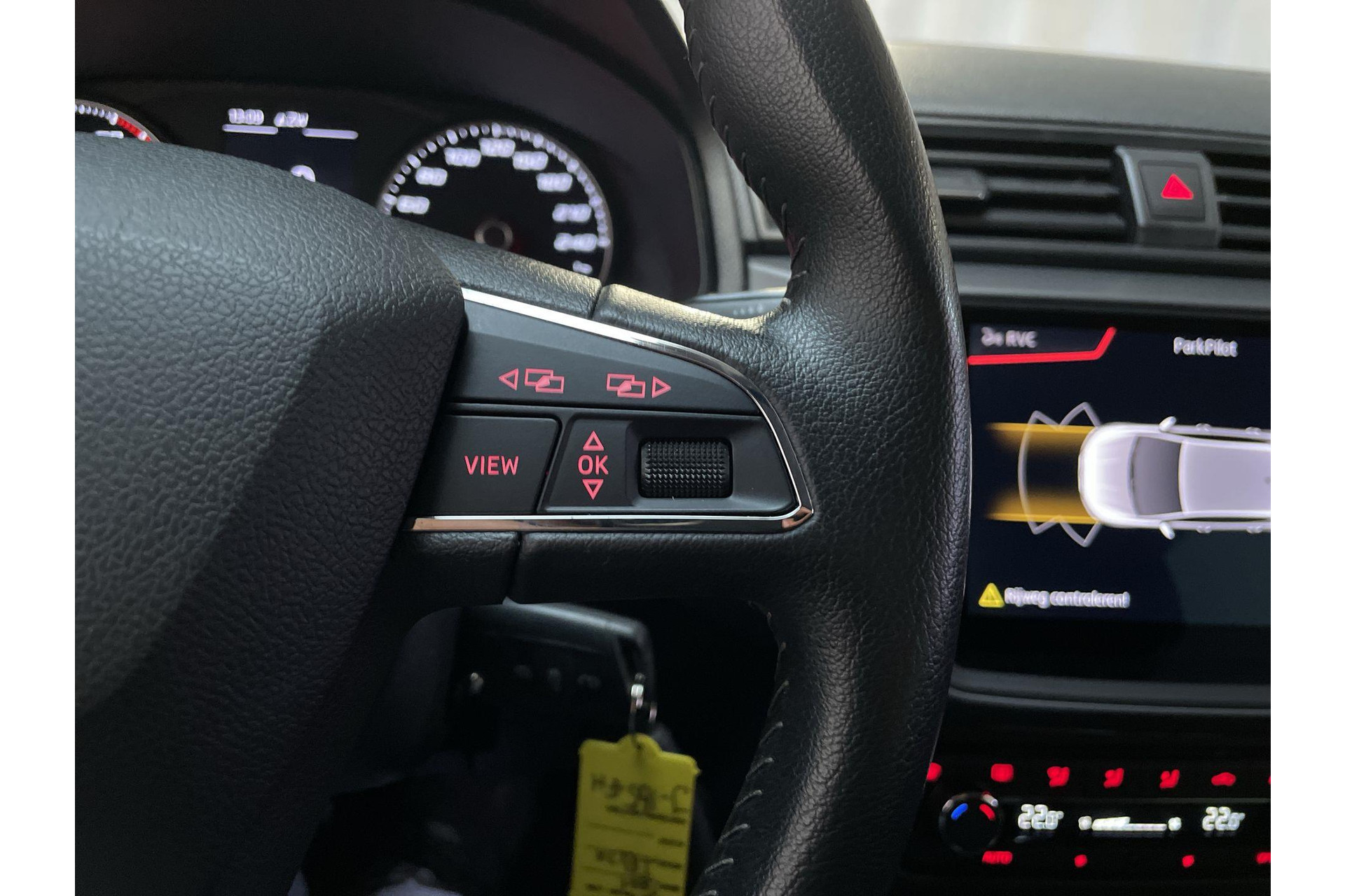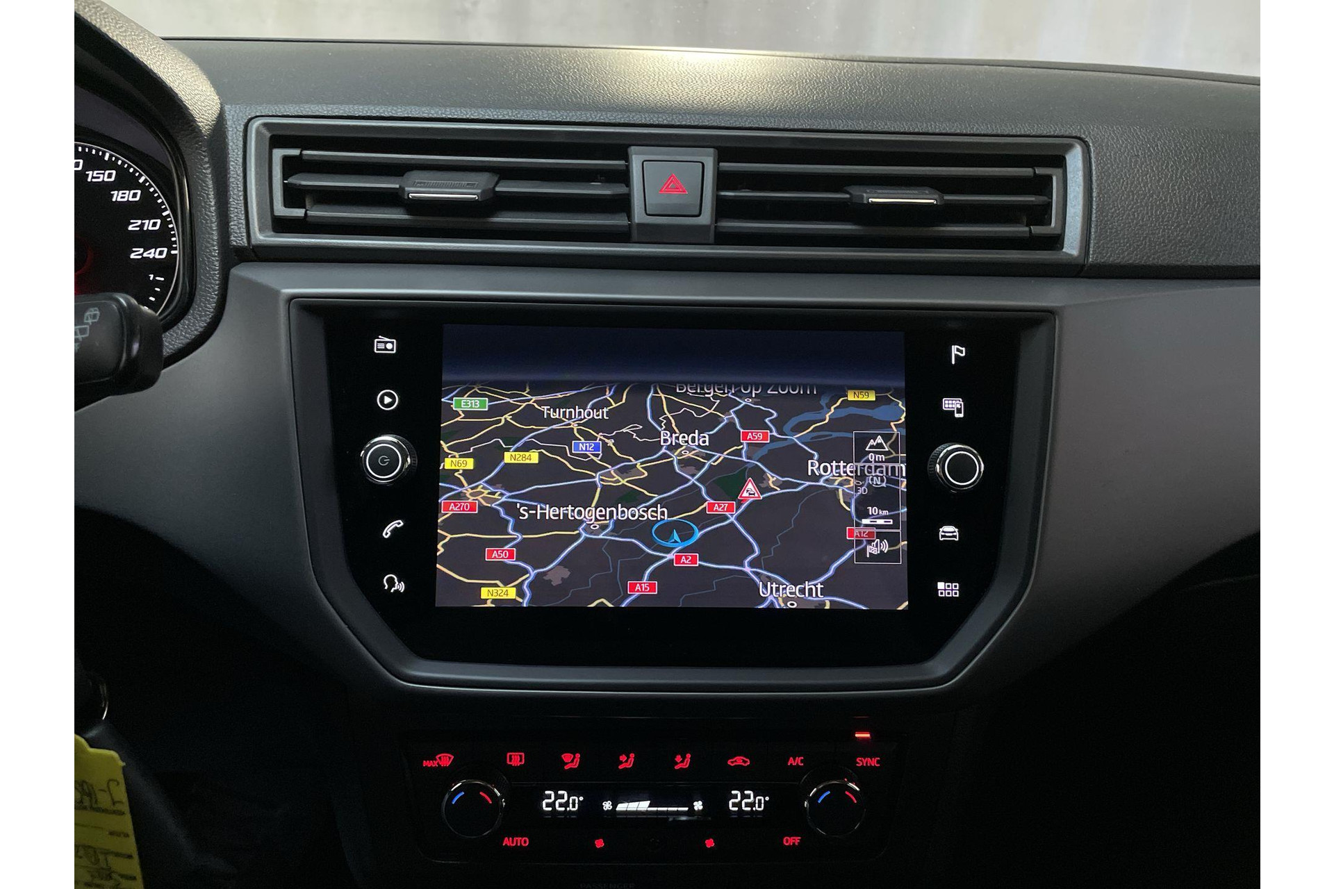 Bij het inparkeren laat de achteruitrijcamera precies zien hoeveel meter... decimeter... centimeter ruimte er nog is! Een belangrijke veiligheidsvoorziening is de bediening van het audiosysteem en het navigatiesysteem, via knoppen op het stuur en middels spraakbediening. Automatische airconditioning verwarmt of koelt het interieur met een druk op de knop. Het drukke verkeer eist onderweg al jouw aandacht op. Daarom is het goed dat deze Seat is voorzien van diverse systemen die je assisteren tijdens de rit. Een automatisch inschakelbare verlichting neemt het waar als het donker wordt of gaat schemeren, en schakelt dan automatisch de verlichting in. Op dezelfde manier "ziet" de regensensor de eerste spatjes regen en schakelt dan de ruitenwissers in, en als het harder gaat regenen zet hij de ruitenwissers ook in een snellere stand. Een heerlijke egale snelheid? Even de cruise control inschakelen! En dan is deze auto ook nog eens voorzien van automatisch dimmende binnenspiegel, lederen stuur, centrale deurvergrendeling met afstandsbediening, boordcomputer en lederen versnellingspook.