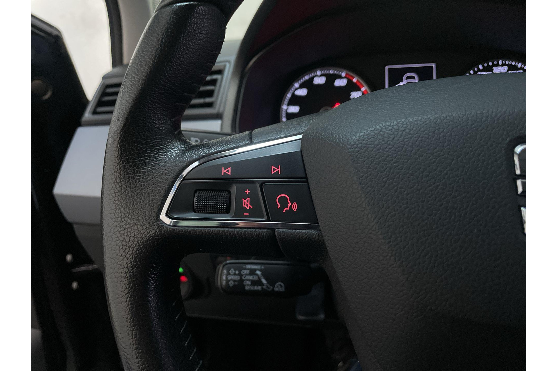 De achteruitrijcamera levert eersteklas parkeerservice. Je weet precies hoeveel ruimte je nog hebt, in beeld en geluid. Als je de adaptive cruise control inschakelt, regelt de auto zelf de snelheid en de afstand tot de auto voor je. Ingebouwde spraakbediening maakt het mogelijk om de auto te bedienen zonder dat jouw aandacht wordt afgeleid. Kaartlezen is verleden tijd, dankzij het aanwezige navigatiesysteem. Jij verwacht natuurlijk automatische airconditioning in deze auto, en die is er dan ook. De uitrusting van deze Seat is met draadloos opladen, regensensor, keyless entry, automatisch dimmende binnenspiegel, lederen stuur en boordcomputer behoorlijk compleet.