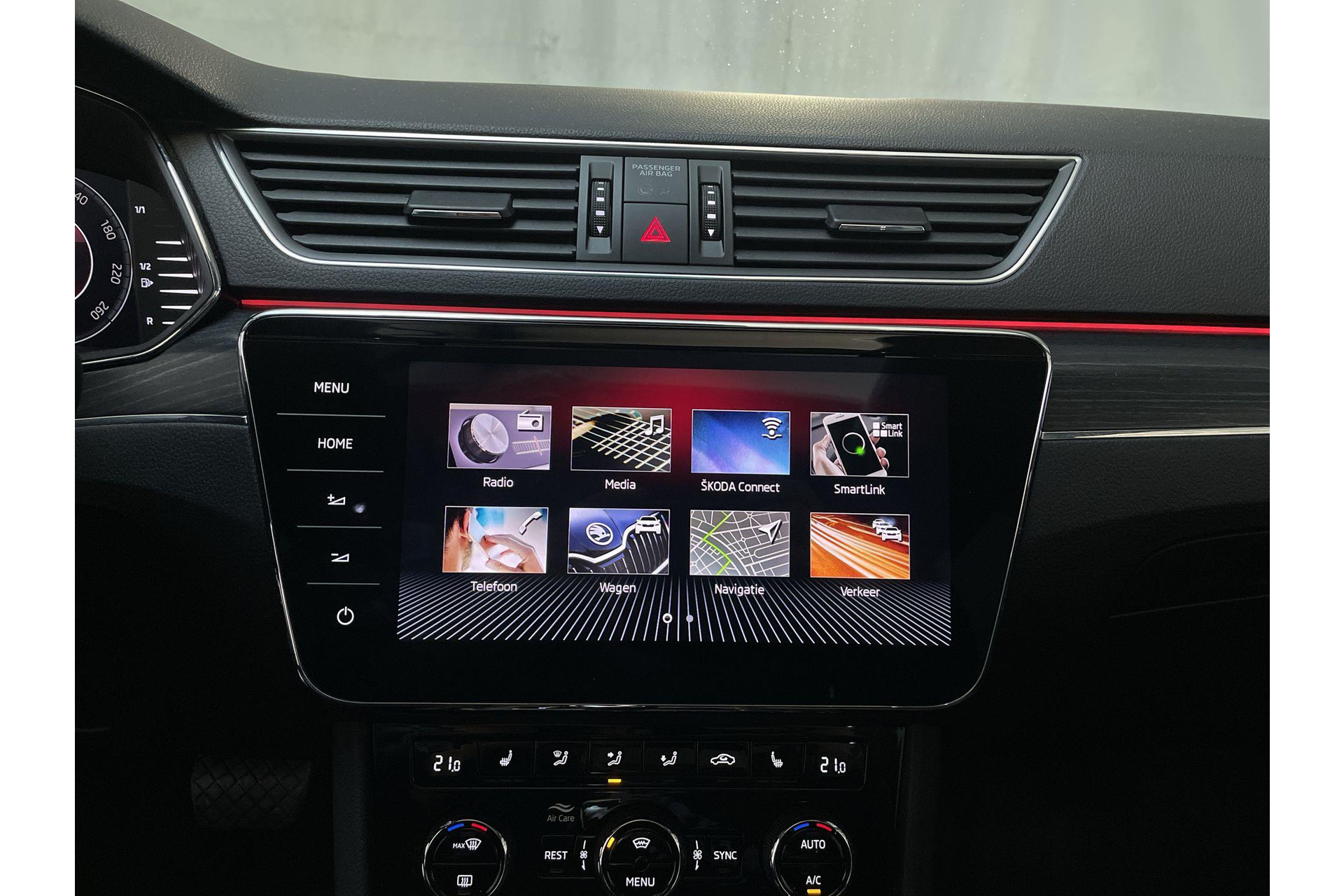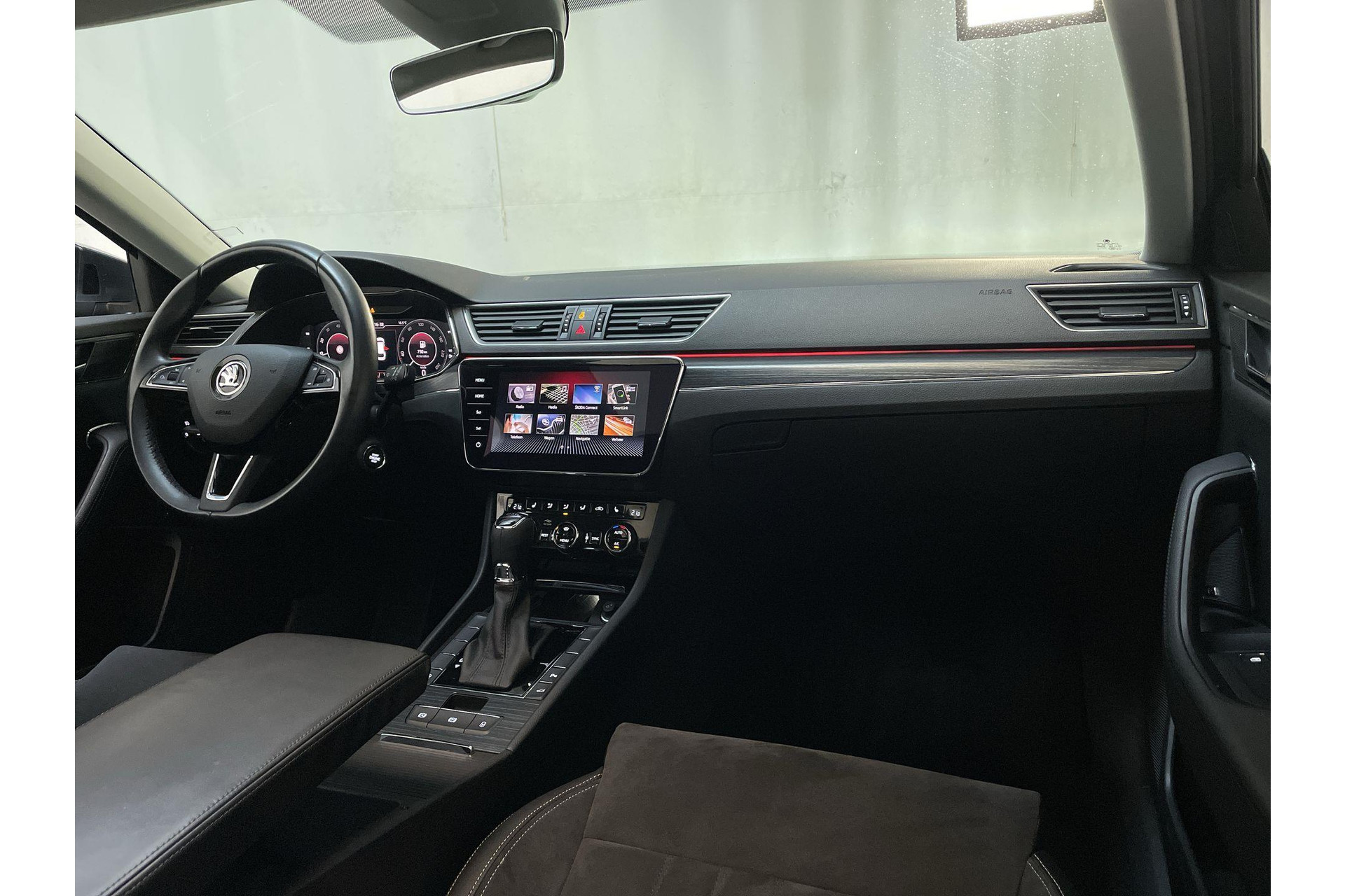 Met adaptive cruise control houdt deze auto automatisch afstand tot jouw voorligger. Had je de auto nou wel afgesloten? Met Connected Services check je het overal en altijd. Met spraakbediening of de knoppen op het stuur regel jij het audio-installatiesysteem en het navigatiesysteem, terwijl je je blik op de weg gericht houdt. De audio-installatie biedt daarbij glasheldere ontvangst dankzij DAB-ontvangst. Kabels niet nodig, de draadloze telefoonlader laadt je smartphone al rijdend bij. Radarsensoren aan de achterkant van de auto zorgen voor een achteropkomend verkeer waarschuwing als de afstand tot het verkeer achter te klein wordt. Deze Skoda is voorzien van automatische airconditioning, parkeersensoren voor en achter, regensensor, keyless entry, automatisch dimmende buitenspiegels en lederen stuur.