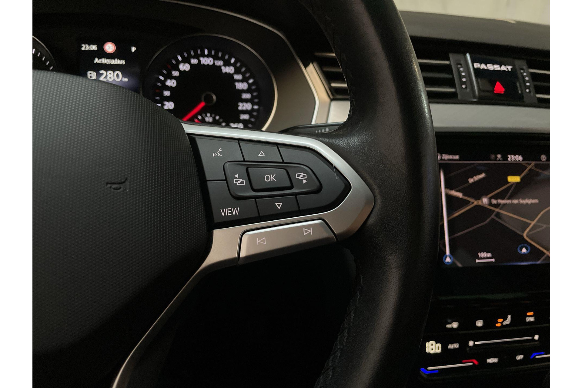 Met het digitale dashboard van deze auto is de aanpassing van jouw cockpitinterface een fluitje van een cent. Als je de adaptive cruise control inschakelt, regelt de auto zelf de snelheid en de afstand tot de auto voor je. De ingebouwde Connected Services vertellen je via de app alles over de status van de auto. Locatie, onderhoudsstatus, brandstofpeil en nog veel meer! In deze Passat Variant vind jij schakelaars op het stuur om het navigatiesysteem te bedienen en het audio-installatiesysteem met DAB-ontvangst. Bij het wisselen van rijbaan kan een dode hoek ontstaan waardoor achterliggers te dichtbij kunnen komen. De achteropkomend verkeer waarschuwing geeft in dat geval automatisch een signaal. Wat je ook in deze auto kunt vinden zijn electronic climate control, sportstuur met schakelpaddels, parkeersensoren achter, regensensor, keyless entry en automatisch dimmende buitenspiegels.