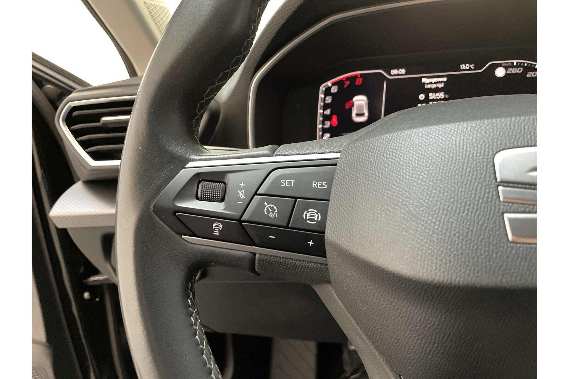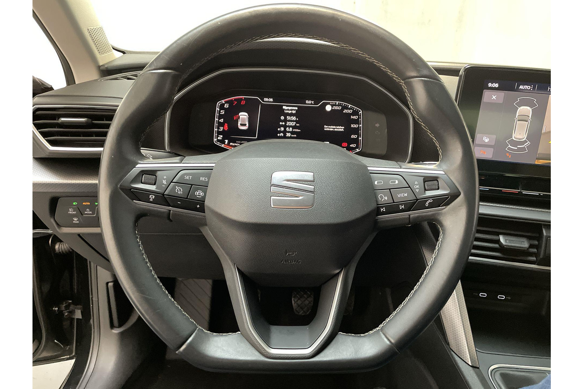 Het systeem controleert alle belangrijke functies en geeft die perfect weer via het digitale dashboard. Hoeveel ruimte heeft u nog bij het inparkeren? De achteruitrijcamera brengt helder in beeld wat zich achter de auto bevindt en geeft een geluidssignaal. Adaptive cruise control houdt de ingestelde snelheid vast en houdt automatisch afstand tot jouw voorligger. Pech oplossen en zelfs voorkomen? Gaat eenvoudig. Via Connected Services heb je alle data in de hand, gewoon op de smartphone! Tijdens de rit bedien jij het audiosysteem en het navigatiesysteem met de knoppen op het stuur of met je stem. Je bent in deze Seat ook voorzien van automatische airconditioning, regensensor, automatisch dimmende binnenspiegel, lederen stuur, centrale deurvergrendeling met afstandsbediening en lederen versnellingspook.