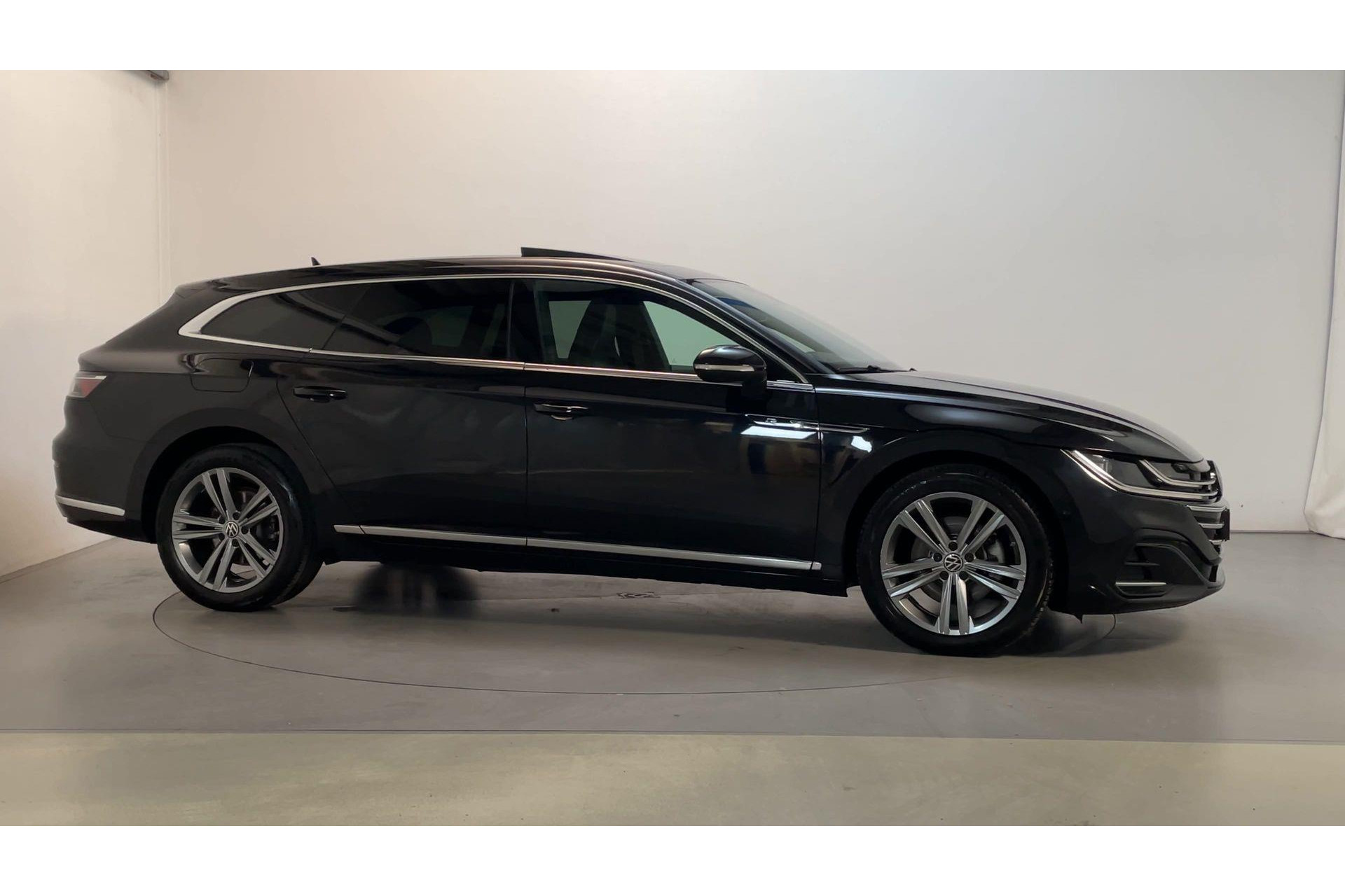 Natuurlijk, een Volkswagen herken je altijd. Want een Volkswagen onderscheidt zich met zijn kwaliteit, zijn doordachte techniek en zijn geweldige rijeigenschappen. En dat geldt ook voor deze Arteon Shooting Brake. De sportieve en hightech ambiance is geheel te danken aan de R-Line styling. Het zijn de degelijkheid van de constructie en de doordachtheid van het ontwerp die ervoor zorgen dat een Volkswagen jarenlang begeerlijk blijft. Zoals deze Arteon Shooting Brake, bijvoorbeeld. Een viercilinder motor en een automatische transmissie zorgen voor de uitstekende prestaties van deze auto. 's Winters komen de verwarmbare voorstoelen heerlijk van pas. Je blijft ook in de scherpe bochten goed ondersteund door de fraaie sportstoelen. Fun en functie wordt samengebracht in het elektrisch bedienbare glazen panoramadak. Een praktische extra is de elektrisch bedienbare achterklep die opent en sluit met een druk op de knop. Laat de koude dagen maar komen. Bij jou zitten ze zelfs achterin goed, dankzij de verwarmde achterbank. Opvallend is de geavanceerde matrix LED-verlichting met daglichtkwaliteit. De koplampen dimmen automatisch het deel van de lichtstraal waar voor- of tegenliggers in rijden. De overige segmenten blijven aan en verlichten de weg maximaal. Ook 18 inch lichtmetalen velgen, warmtewerend glas, in delen neerklapbare achterbank, LED-achterlichten, verstelbare lendensteunen en verwarmde ruitensproeiers horen tot de voorzieningen op deze auto.