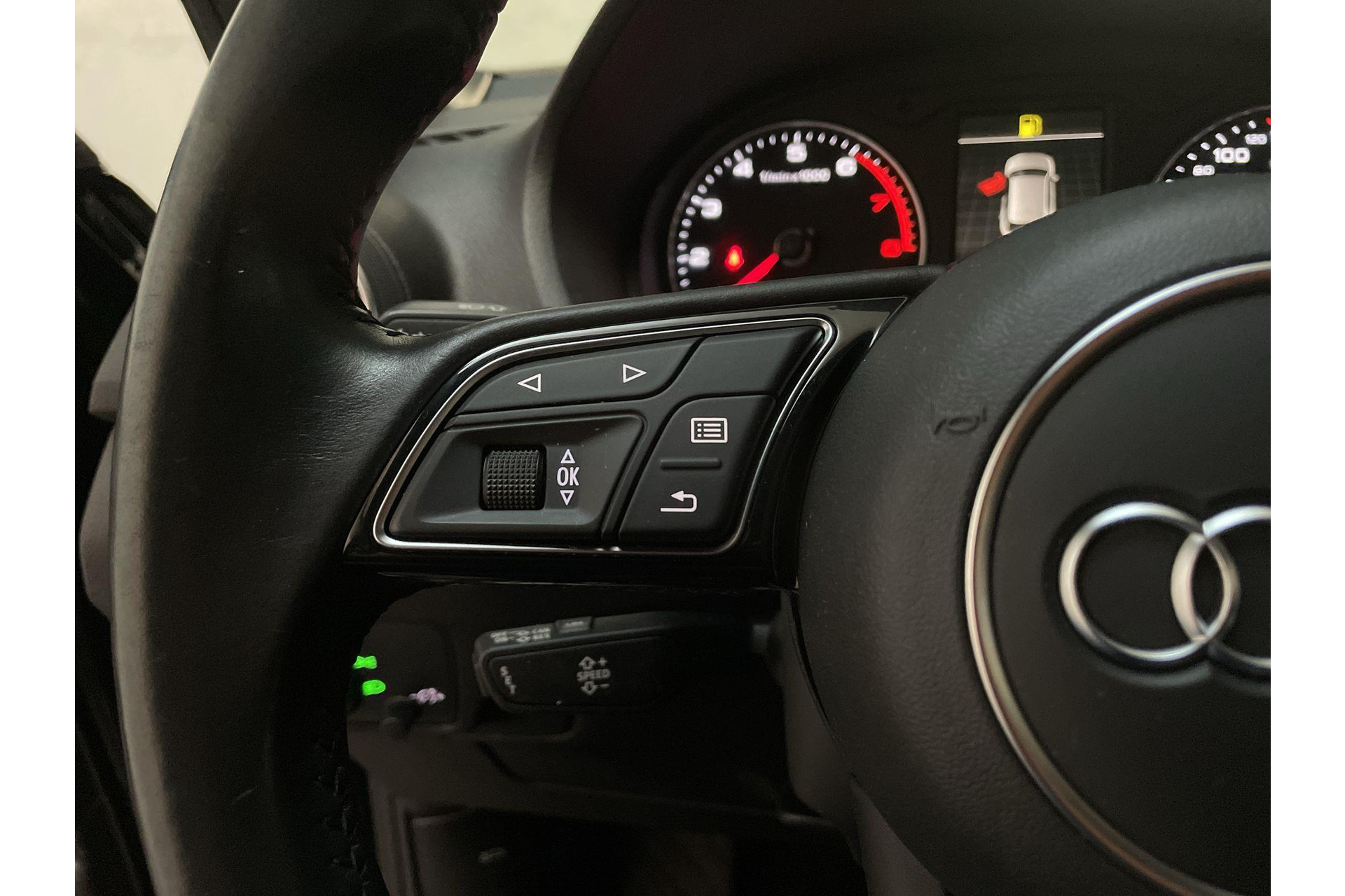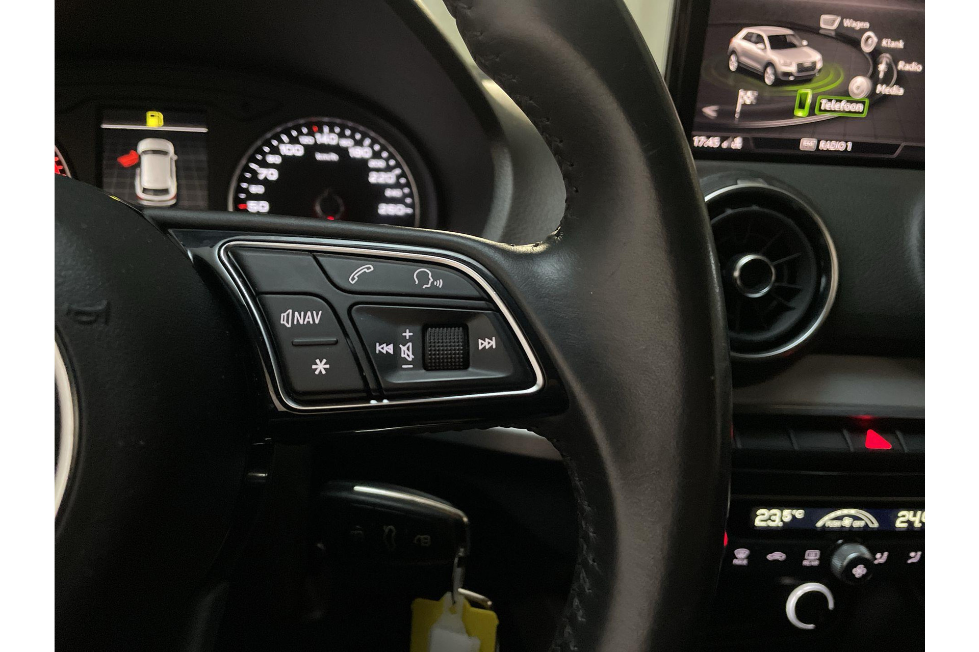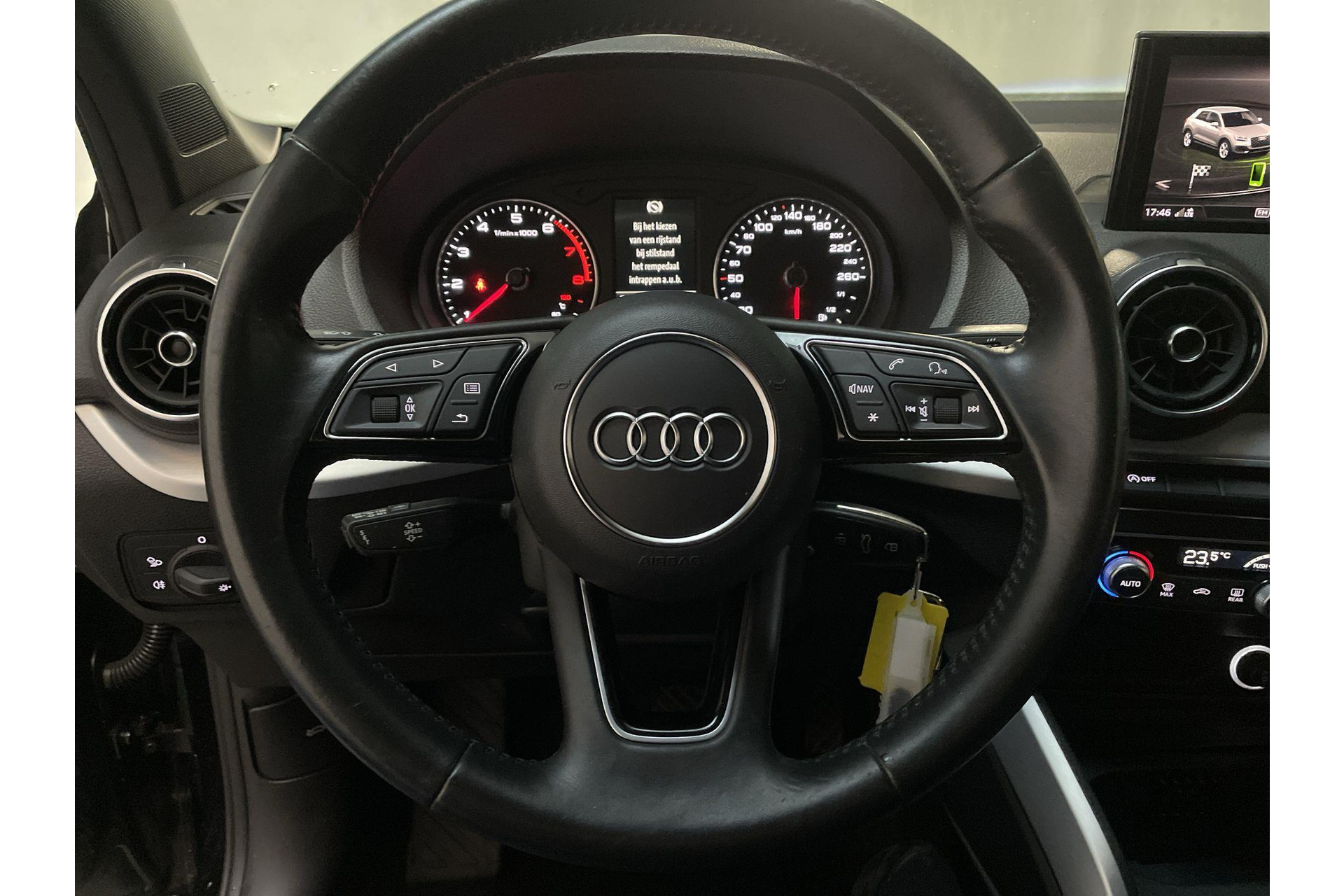 Het audiosysteem is gecombineerd met het navigatiesysteem en geeft je de keus om onderweg te luisteren wat je wilt. Verkeersinfo, je favoriete albums en radioprogramma's, podcasts, luisterboeken... zeg het maar. Deze auto heeft ook bluetooth aan boord. Naast de routeinformatie van het gekoppelde navigatiesysteem kan je muziek via het audiosysteem ook online beluisteren dankzij bluetooth. Met de automatische airconditioning selecteer jij de gewenste temperatuur. Het systeem doet de rest. Boem is ho? Niet bij deze Audi Q2. De piepjes van de parkeersensoren waarschuwen je op tijd voor obstakels. Om de veiligheid onderweg te verhogen, heeft deze Audi zowel een automatisch inschakelbare verlichting als een regensensor aan boord, zodat hij zelf de verlichting en de ruitenwissers kan inschakelen. Cruise control houdt automatisch de ingestelde snelheid vast. Het is een ideaal hulpmiddel om lange ritten comfortabeler te maken. De Audi is standaard voorzien van: lederen sportstuur, centrale deurvergrendeling met afstandsbediening en boordcomputer.