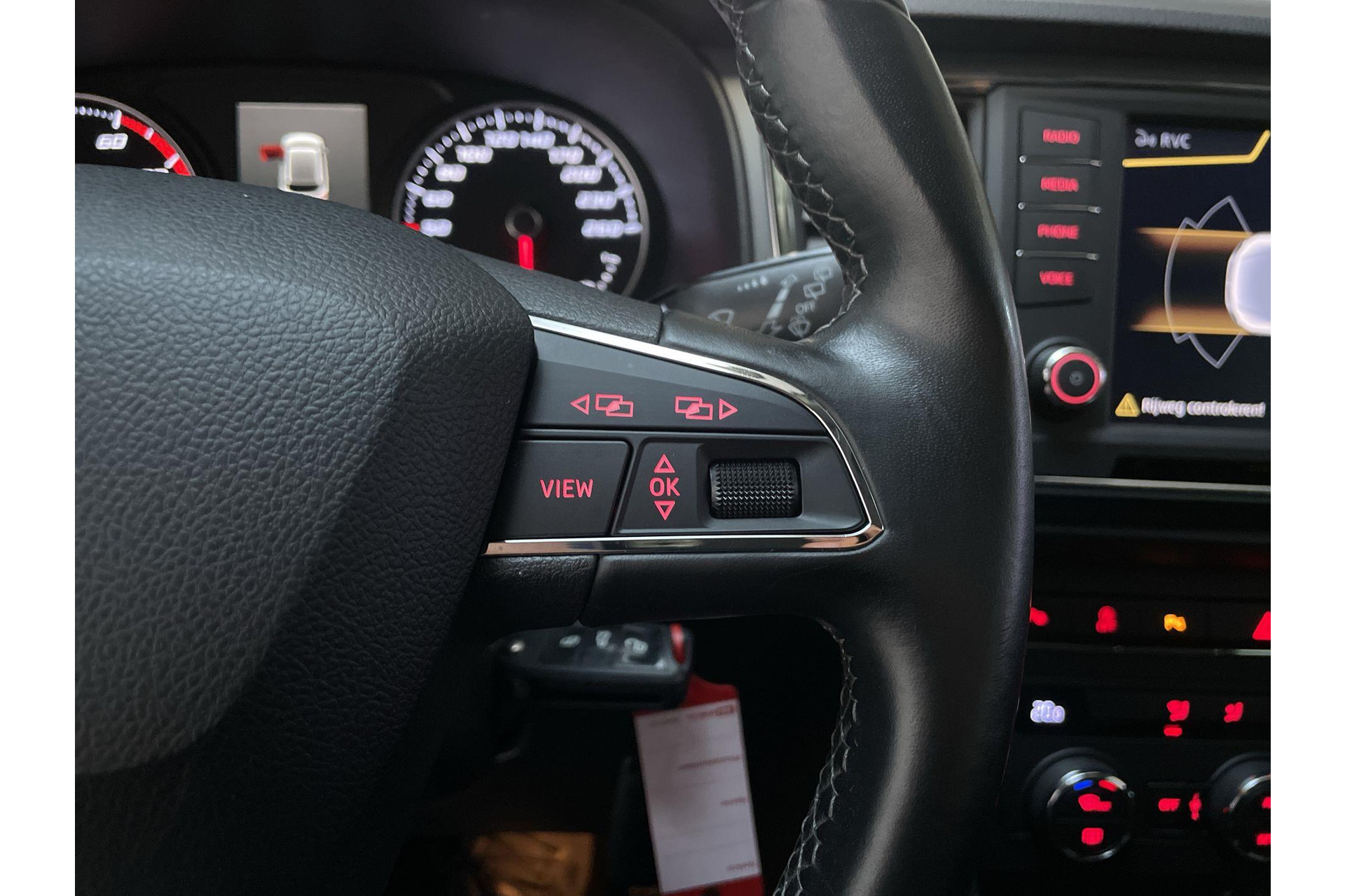 Bij het inparkeren laat de achteruitrijcamera precies zien hoeveel meter... decimeter... centimeter ruimte er nog is! Het navigatiesysteem en het audiosysteem (met DAB-ontvangst!) bedien je met knoppen op het stuur. Bij de luxe van deze auto hoort ook automatische airconditioning. Het drukke verkeer eist onderweg al jouw aandacht op. Daarom is het goed dat deze Seat is voorzien van diverse systemen die je assisteren tijdens de rit. Een automatisch inschakelbare verlichting neemt het waar als het donker wordt of gaat schemeren, en schakelt dan automatisch de verlichting in. Op dezelfde manier "ziet" de regensensor de eerste spatjes regen en schakelt dan de ruitenwissers in, en als het harder gaat regenen zet hij de ruitenwissers ook in een snellere stand. Een stabiele en comfortabele snelheid houd je feilloos aan met de cruise control. Deze Seat is voorzien van buitentemperatuurmeter, automatisch dimmende binnenspiegel, lederen stuur, centrale deurvergrendeling met afstandsbediening, bagage afdekhoes en boordcomputer.